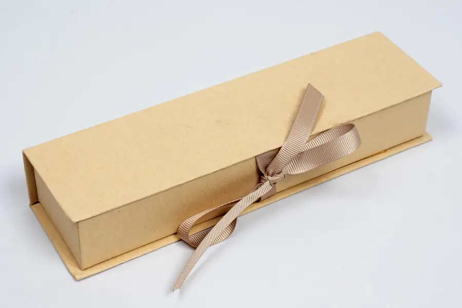 8 x 2 x 1-1/4 NATURAL KRAFT LUXE JEWELRY BOX WITH NATURAL KRAFT RIBBON